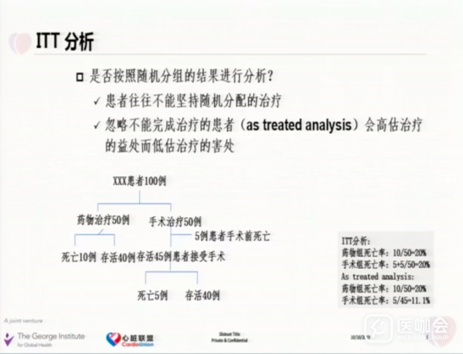 北京安贞医院的杜昕教授就随机对照研究的方方面面进行了详细探讨,第一节课程中杜教授带来《随机对照研究的原理与设计原则》。杜教授在讲座中详细讲述了意向性分析(Intention-to-treat Analysis, ITT分析),ITT分析意味