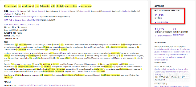 以2002年NEJM发表的一篇文献“Reduction in the Incidence of Type 2 Diabetes with Lifestyle Intervention or Metformin”为例,介绍5种常见途径查看论文