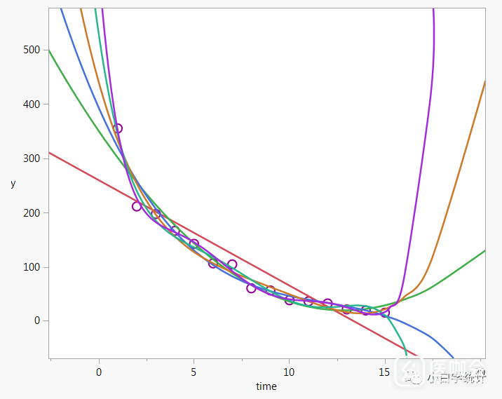直线回归能用来描述的实际问题太少了,现实中绝大多数的关系都不是直线关系,因此直线回归比较常用的替代方法是多项式回归,然而,有一个问题就是,随着项数的增多,尽管可以对数据拟合越来越好,但随之而来的问题是过拟合......