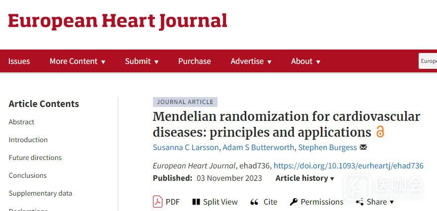 EHJ综述:什么是孟德尔随机化研究?(IF=39.3)