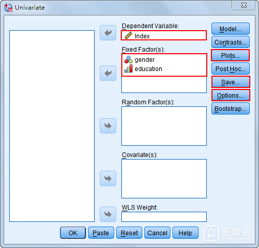 研究者已知一个自变量(受教育程度)对因变量(幸福指数)的影响,想判断另一个自变量(性别)对这一相关关系是否存在作用。针对这种情况,我们可以使用两因素方差分析,但需要先满足6项假设。
