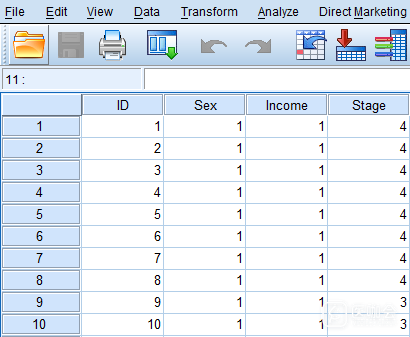 在某胃癌筛查项目中,研究者想了解首诊胃癌分期(Stage)与患者的经济水平的关系,以确定胃癌筛查的重点人群。为了避免性别因素对结论的混杂影响,研究者将性别(Sex)也纳入分析(本例仅为举例说明如何进行软件操作,实际研究中需控制的混杂因素可以