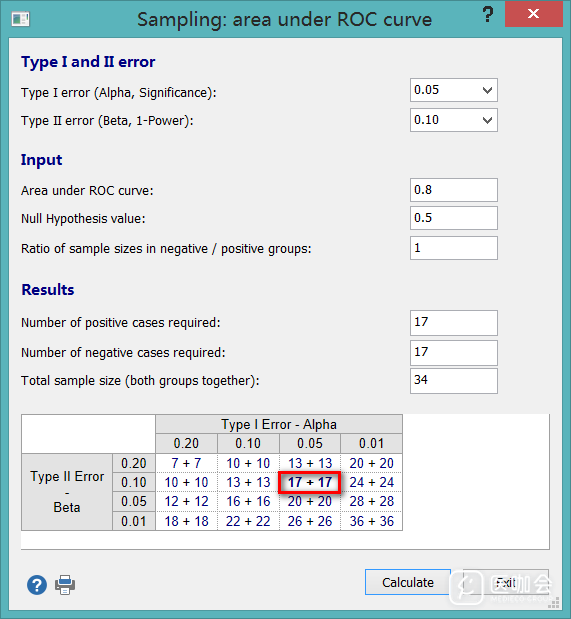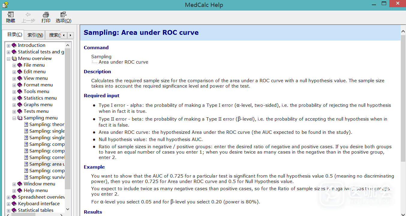 利用ROC曲线下面积计算样本量-Medcalc软件教程