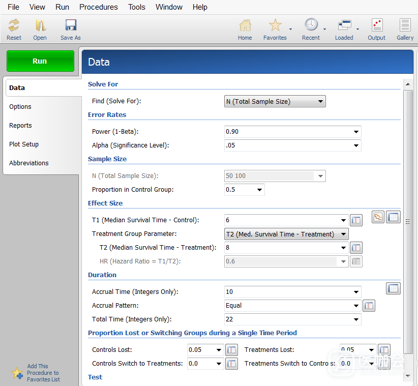 生存分析研究在临床上非常常见,例如肿瘤科大夫想要评价两种治疗措施对于患者生存期的影响,或者肿瘤复发的影响,一般要用到生存分析。 一般肿瘤治疗药物的临床研究,都会采用Logrank检验比较主要结局。本文将介绍如何利用PASS软件计算生存分析L