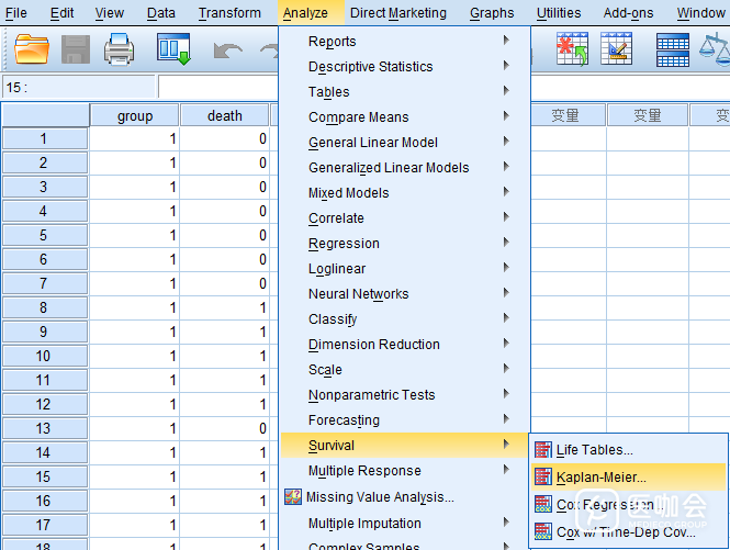 Kaplan-Meier 分析是一种非参数生存分析方法,用来估计在不同时间点上,事件没有发生的概率。