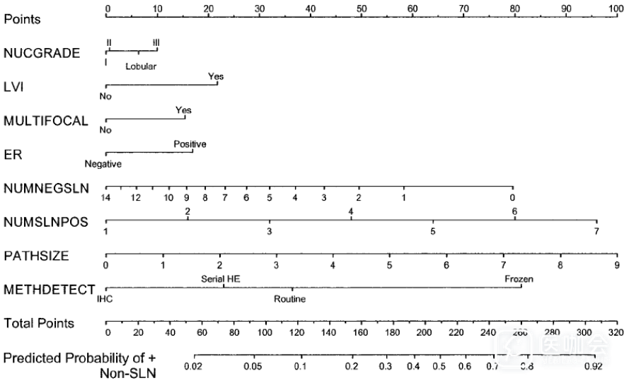 风险评分的建立基于模型中每个变量的权重,即多因素回归模型中的回归系数;预测模型的好坏可以从区分度(Discrimination)和一致性(Calibration)两方面考虑。