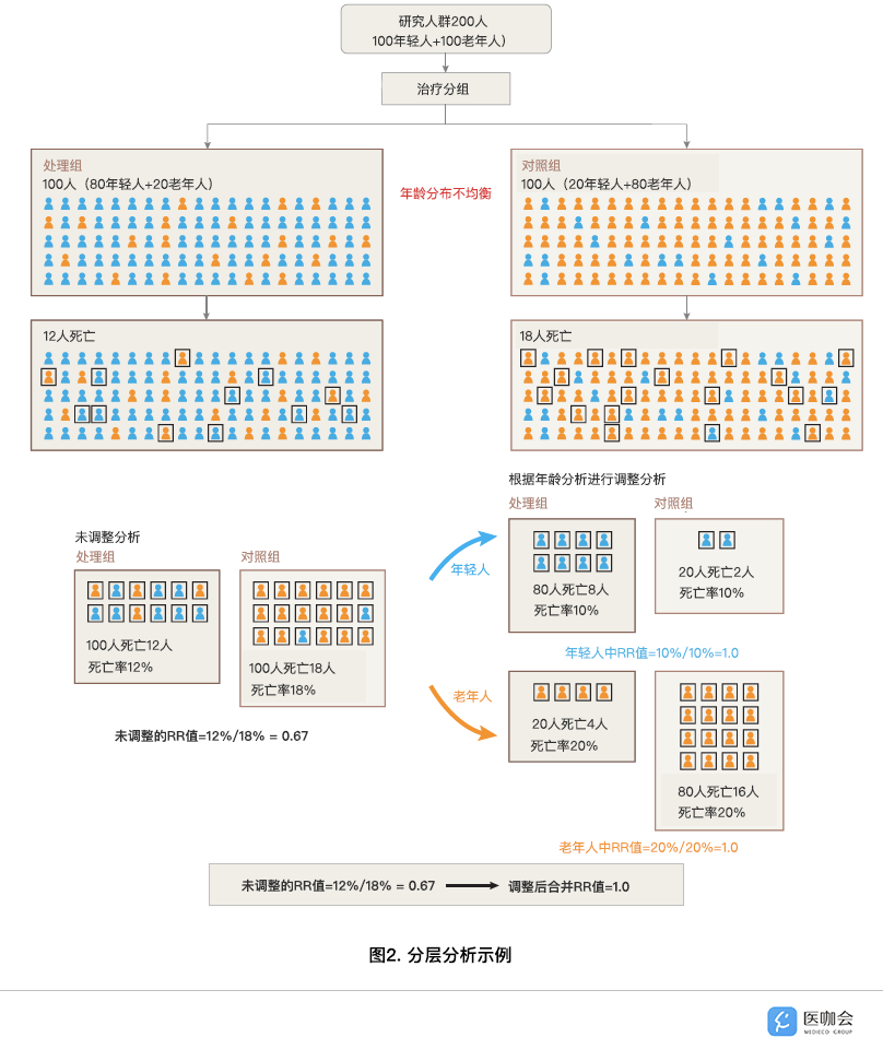 分层分析是一种常用的控制混杂因素的方法,它是将数据资料按照某个需要控制的混杂因素进行分层,然后再估计暴露/处理因素与研究结局之间的关联性。