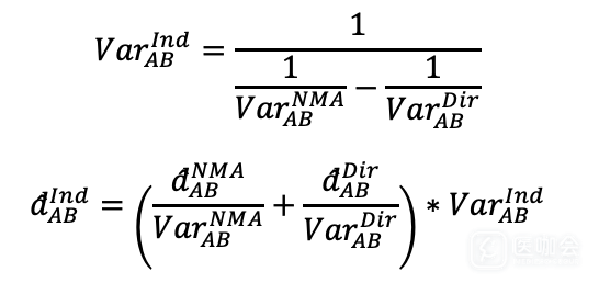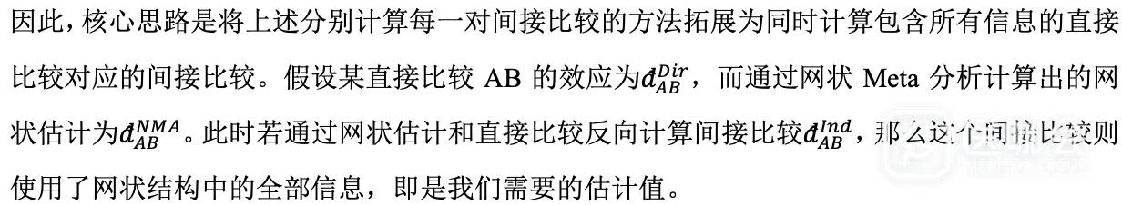 严格来说,对于网状结构中的每一个研究i,无论它实际比较的干预是什么,对于干预Y和X比较的效应在固定效应模型中均相同或在随机效应模型中可交换,我们称之为可交换性假设,通过这个假设可以推导出一致方程组。一致方程组的成立意味着网状结构的一致性成立