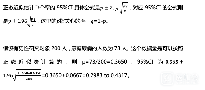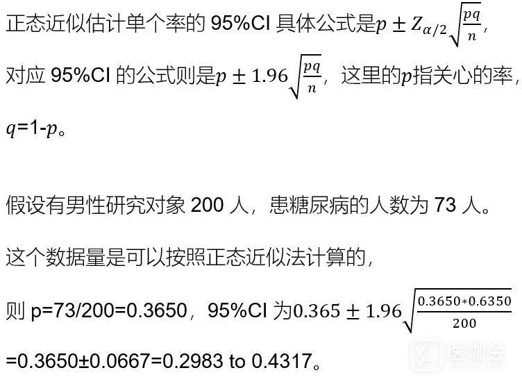 临床研究中,经常要计算某个样本的率(proportion),以及根据样本的率估算总体率的95%可信区间(Confidence Interval,CI)。样本率的计算很容易,那如何计算估算总体率的95%CI呢?