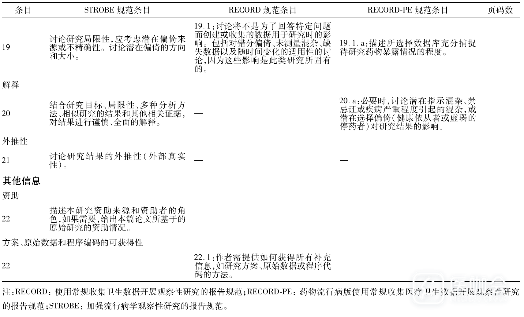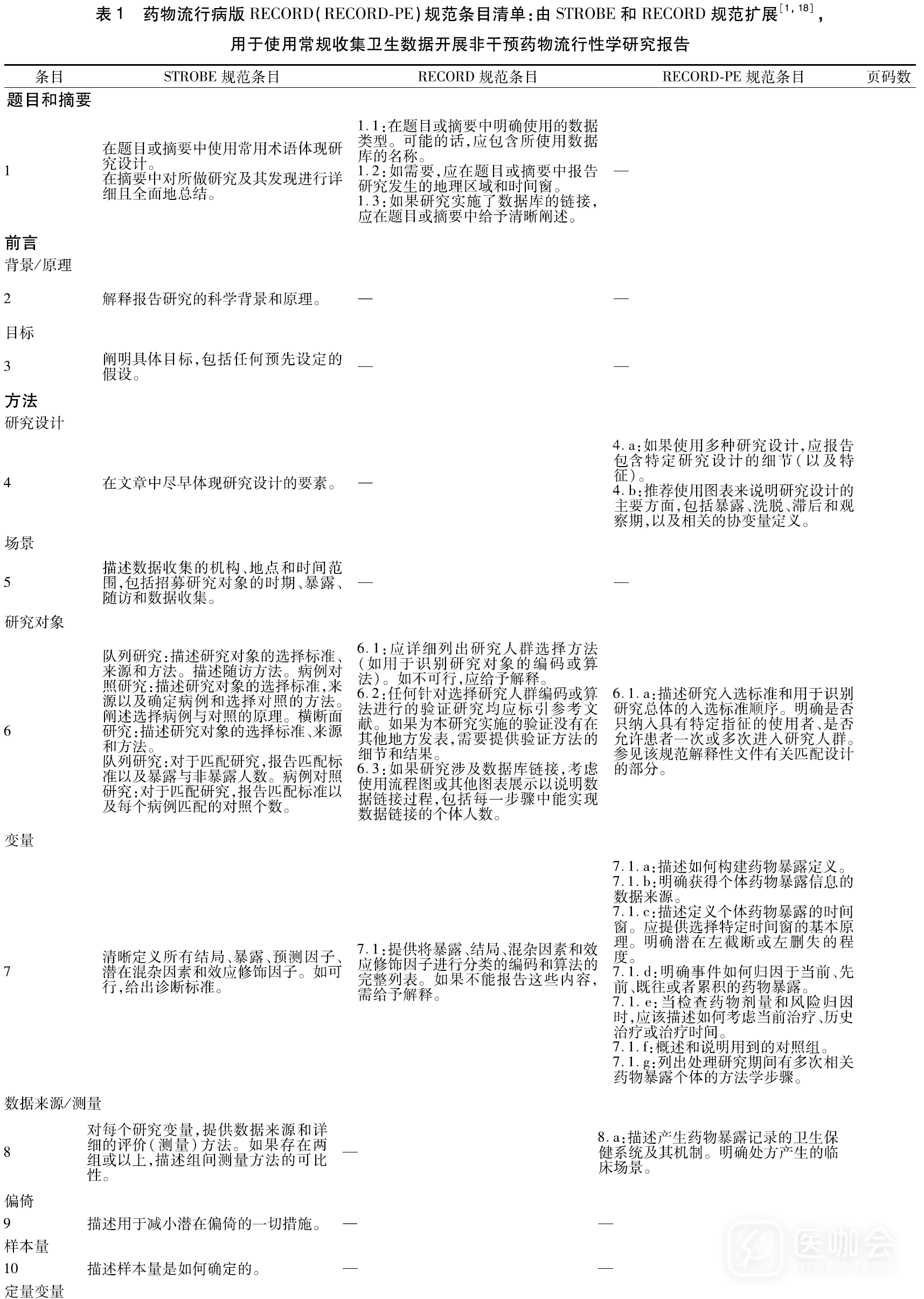 一表总结:常规收集医疗数据开展观察性研究的报告规范