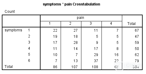 要判断类风湿关节炎躯体感觉症状数量与疼痛等级之间是否有线性变化的趋势,可以使用Mantel-Haenszel卡方检验。进行Mantel-Haenszel卡方检验,需要满足以下两个假设