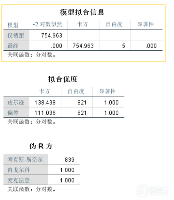 我做的是连续变量的多分类问题,用的是有序逻辑回归,结果如上,想问一下拟合优度、平行性检验为1,有没有问题?谢谢