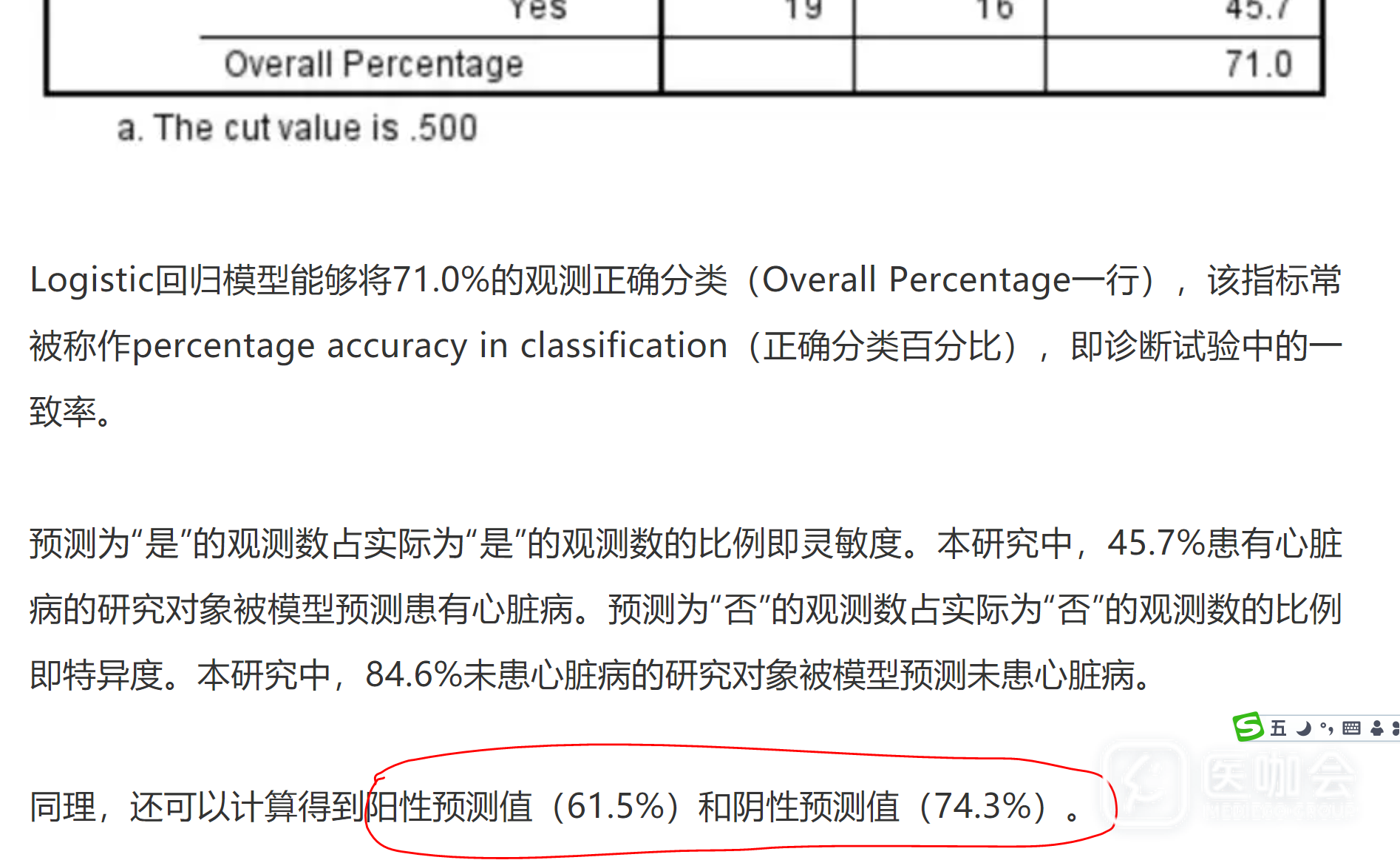 您好,二分类logistic回归分析,如图,请问,阳性阴性预测指是怎么得到的?