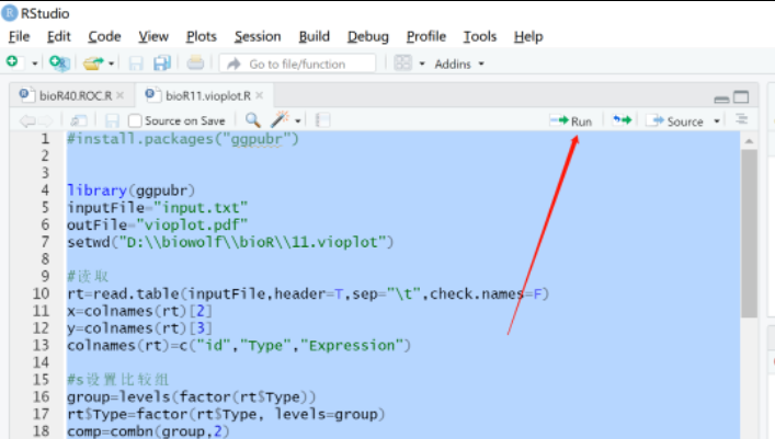 链接:https://pan.baidu.com/s/1uIMd3irQlfxXOkCGqVUoxA 提取码:5wci比如绘制小提琴图:把input里面的数据替换成自己的数据,打开R,安装包、加载包,然后点Run:就出图了: