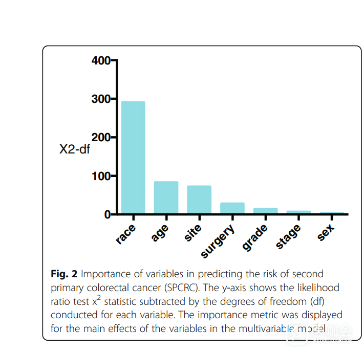 医咖会的老师好,我在做肿瘤预测模型时,发现别人用似然比X2(卡方)-df(自由度)评价变量的重要程度,自己搜了很多资料都不知道其中原理及如何用R语言实现。相关资料附件中提交。希望老师给与指导,不胜感激。PMID:28644772文献连接