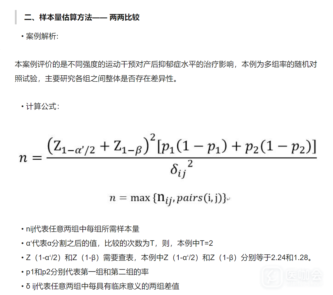 老师好,我想咨询一下样本量计算问题。 研究设计是3-arm 平行对照RCT,主要的结局指标是 率,研究目的是1)比较A,B干预措施与常规相比是否有效,2)比较A,B两种干预措施的效果。 样本量的计算方法,采用以下公式可以吗?