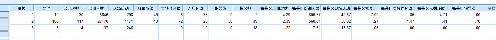 这样的数据要分析三个海拔高度每个县区上报的各个数据是否有差异,SPSS该怎么操作?用什么方法?