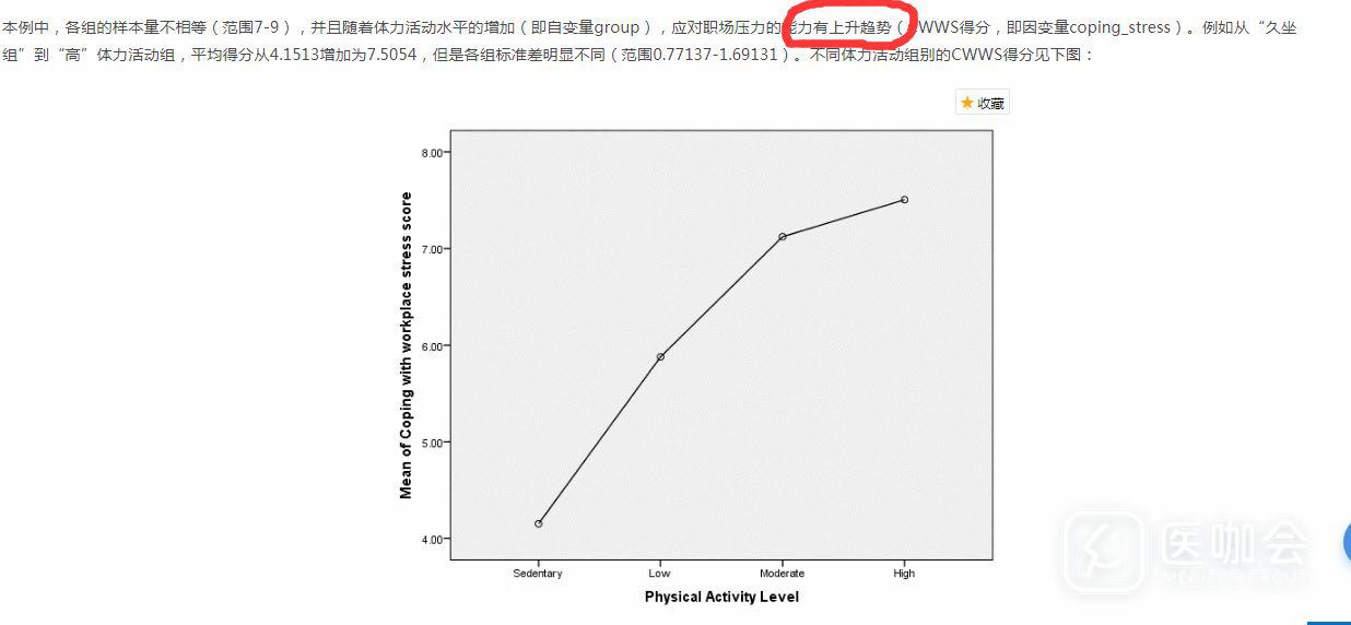 我想分析血压与心血管危险因素个数的关系。先用方差分析了不同危险因素个数组的血压是不同的,同时是随着危险因素个数增加血压是升高的。问题1:可以下“血压是随着危险因素个数积累而增加,或者说随着危险因素积累血压有上升趋势吗?"(在医咖会公众号中看到了方差分析里面有一个曲线图,下图。并下了 趋势结论,这样对不对?)。问题2:如果方差分析不能得出趋势结论,应该用什么样的统计学方法呢?(危险因素个数是有序变量,但是血压是数值)。