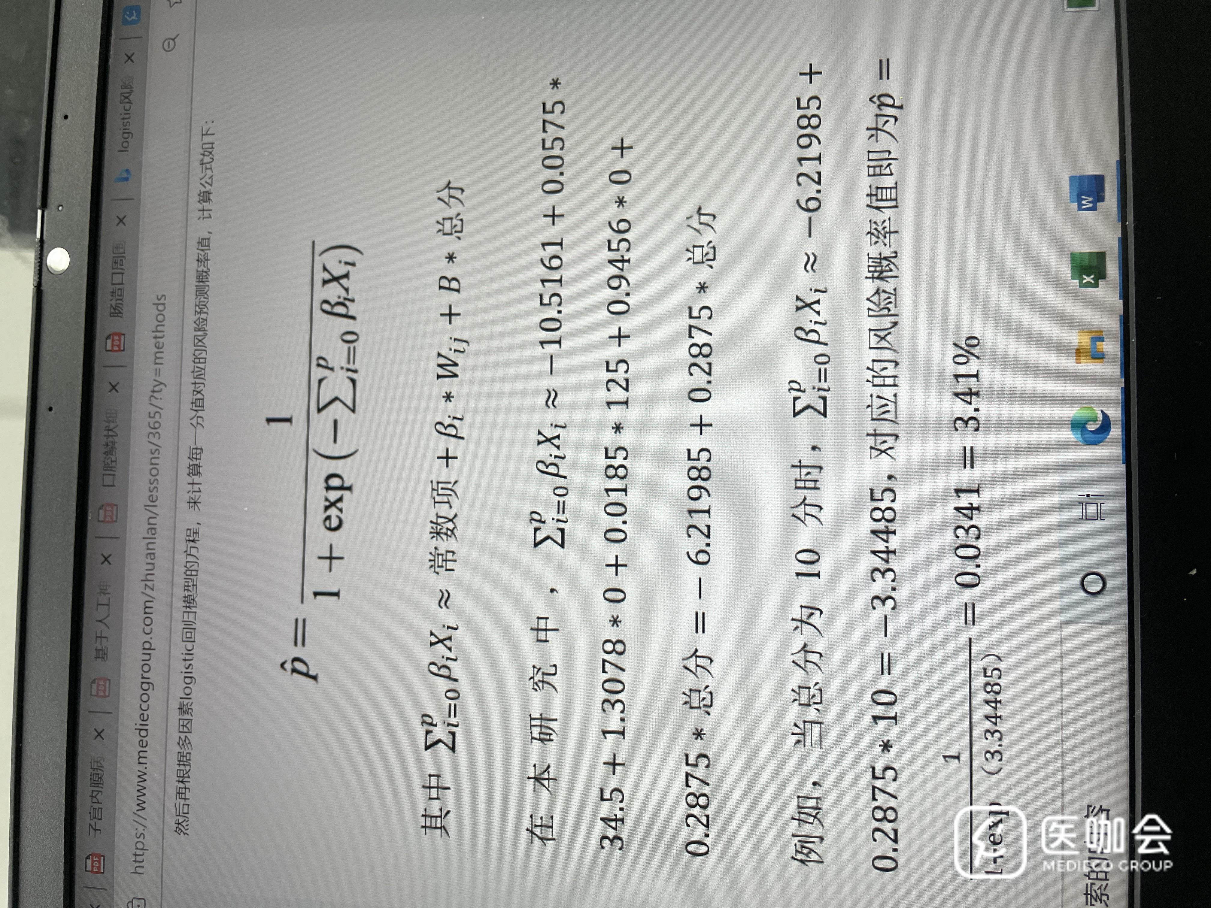 logistic回归模型构建疾病风险评分量表后,评分对应的风险概率怎么计算。求助。