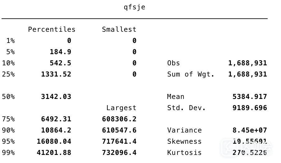 (2)不知道什么原因,模型1和模型2的结果差异较大,比如:①模型1的常数项代表年龄[50,60)的男性患者不合并任何疾病的年费用是2217元,模型2的常数项为6.63,代表的也是年龄[50,60)的男性患者不合并任何疾病的年费用,是(e^6.63)元=757元;②模型1中除了“合并心梗的虚拟变量”取1,其他自变量取0时,代表的是年龄[50,60)的男性患者仅合并心梗的年费用是39,368元,取值相同的情况下,模型2的值为8.85,即同样情况的患者费用为(e^8.85)元=6,947元。不知道您觉得两个模型的结果差异的原因会是什么呢?不知道是不是跟费用的分布有关呢?(附件的两个图分别是取对数前后费用的分布情况(表头qfsje:未取对数,表头Inqfsje:取对数后))