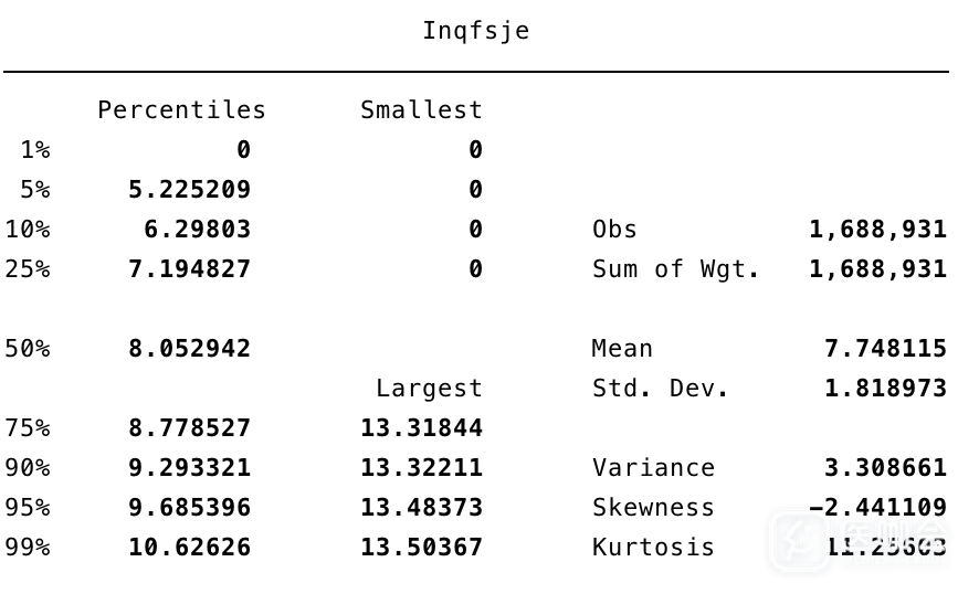 (2)不知道什么原因,模型1和模型2的结果差异较大,比如:①模型1的常数项代表年龄[50,60)的男性患者不合并任何疾病的年费用是2217元,模型2的常数项为6.63,代表的也是年龄[50,60)的男性患者不合并任何疾病的年费用,是(e^6.63)元=757元;②模型1中除了“合并心梗的虚拟变量”取1,其他自变量取0时,代表的是年龄[50,60)的男性患者仅合并心梗的年费用是39,368元,取值相同的情况下,模型2的值为8.85,即同样情况的患者费用为(e^8.85)元=6,947元。不知道您觉得两个模型的结果差异的原因会是什么呢?不知道是不是跟费用的分布有关呢?(附件的两个图分别是取对数前后费用的分布情况(表头qfsje:未取对数,表头Inqfsje:取对数后))