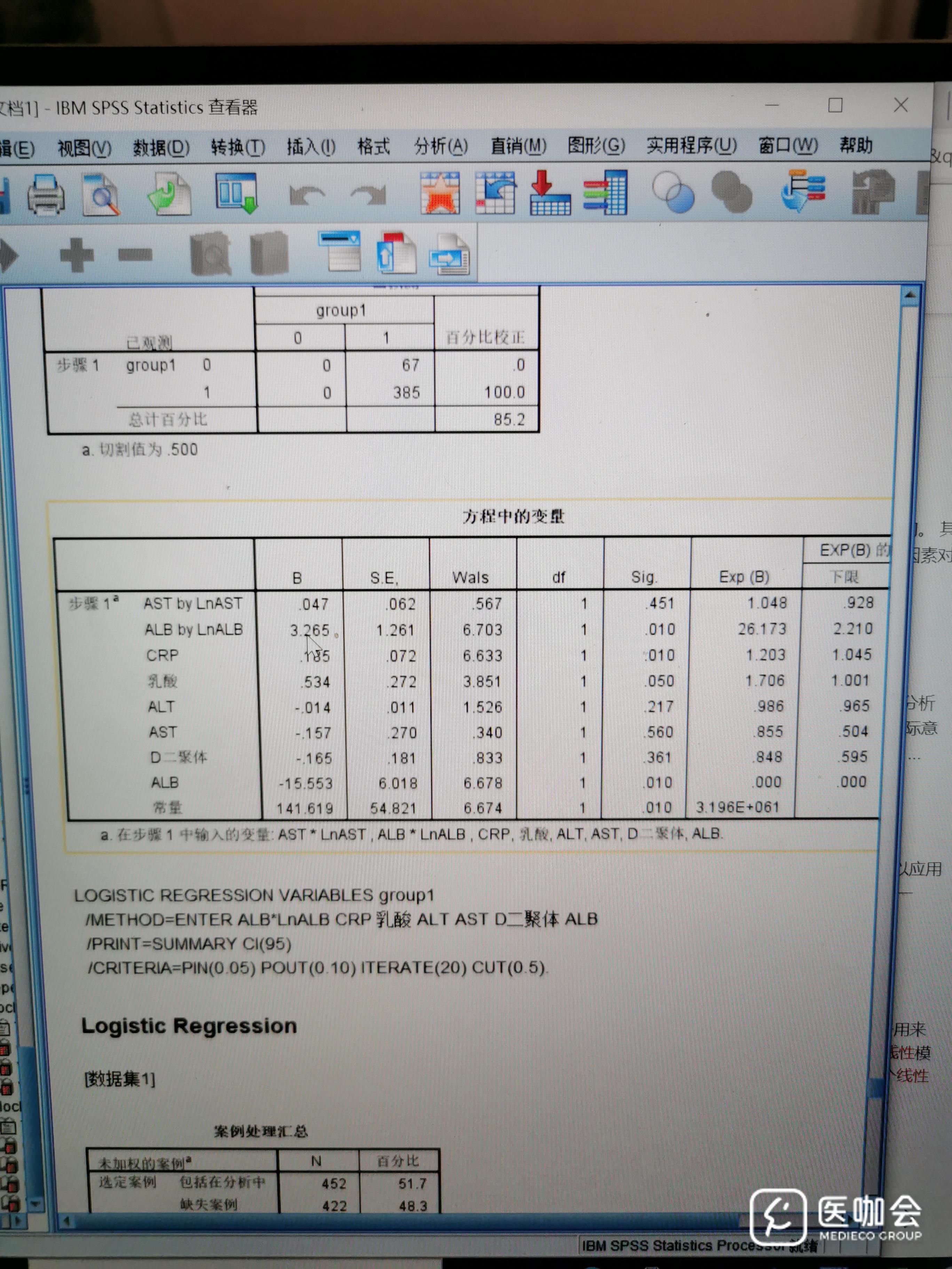 想请问一下,多因素逻辑回归中验证自变量的线性关系,这种是不是就应该是0.05÷9=0.0056,然后AST和ALB的p>0.0056就代表自变量与因变量有线性关系?还是说p要>0.05才说明有线性关系?然后那个常量的OR值那么大正常吗?