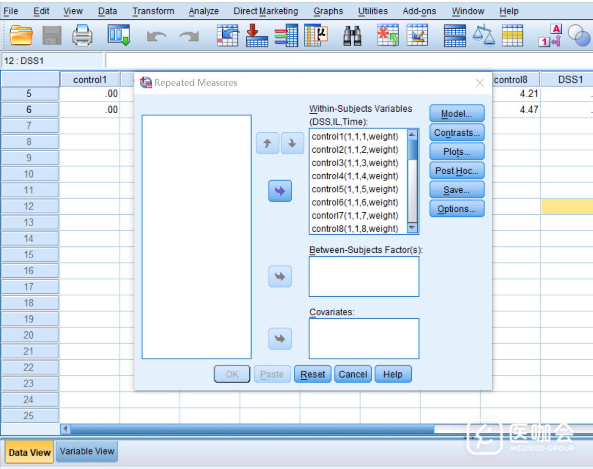 三因素重复测量方差分析,按照教程走完一遍,OK键不显示呢,如图: