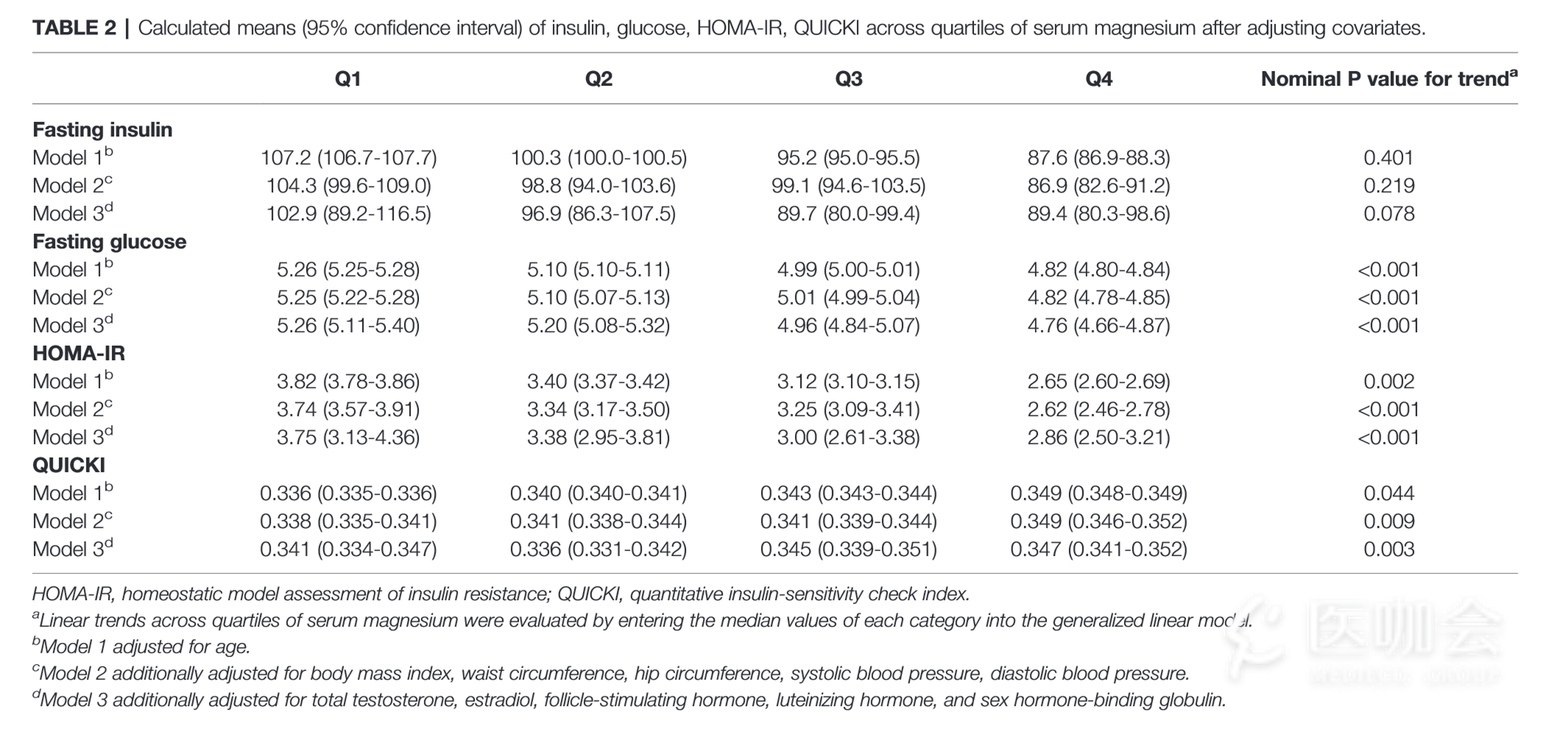 趋势性检验用广义线性模型,四分位组的means(95%confidence interval)是怎么计算的
