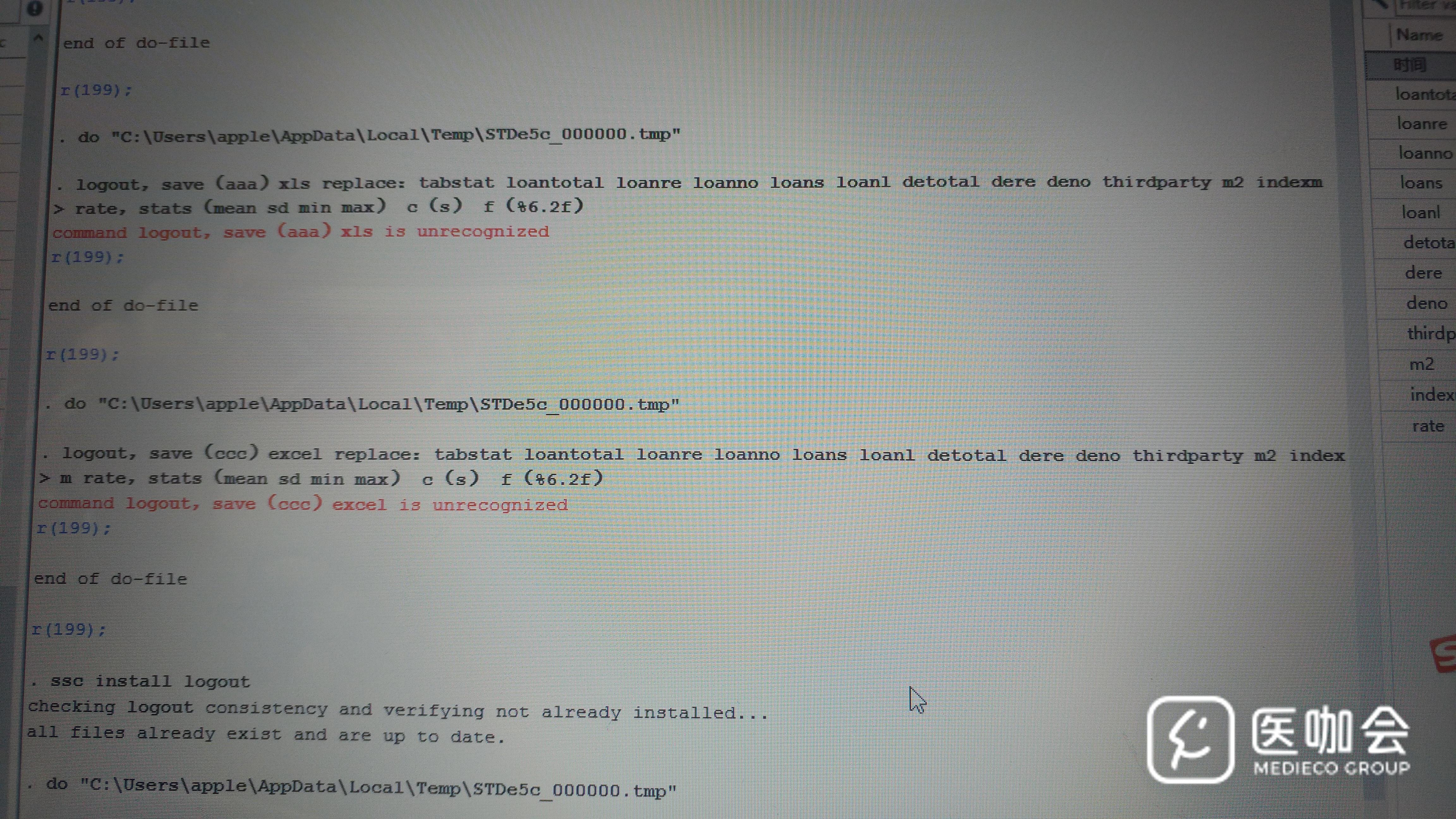 请问我输入logout指令后,想把描述性统计分析的结果输出成doc或者表格的形式,为什么系统一直显示指令无法识别呢?