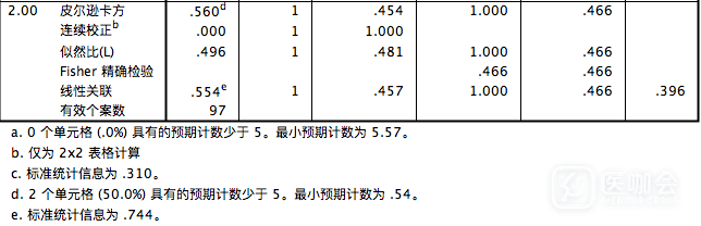请问老师,2✖️3列联表通过fisher精确检验得出上述结果。归纳在文章表格上,是不是可以说卡方值为0.560 ,p值为0.466?谢谢