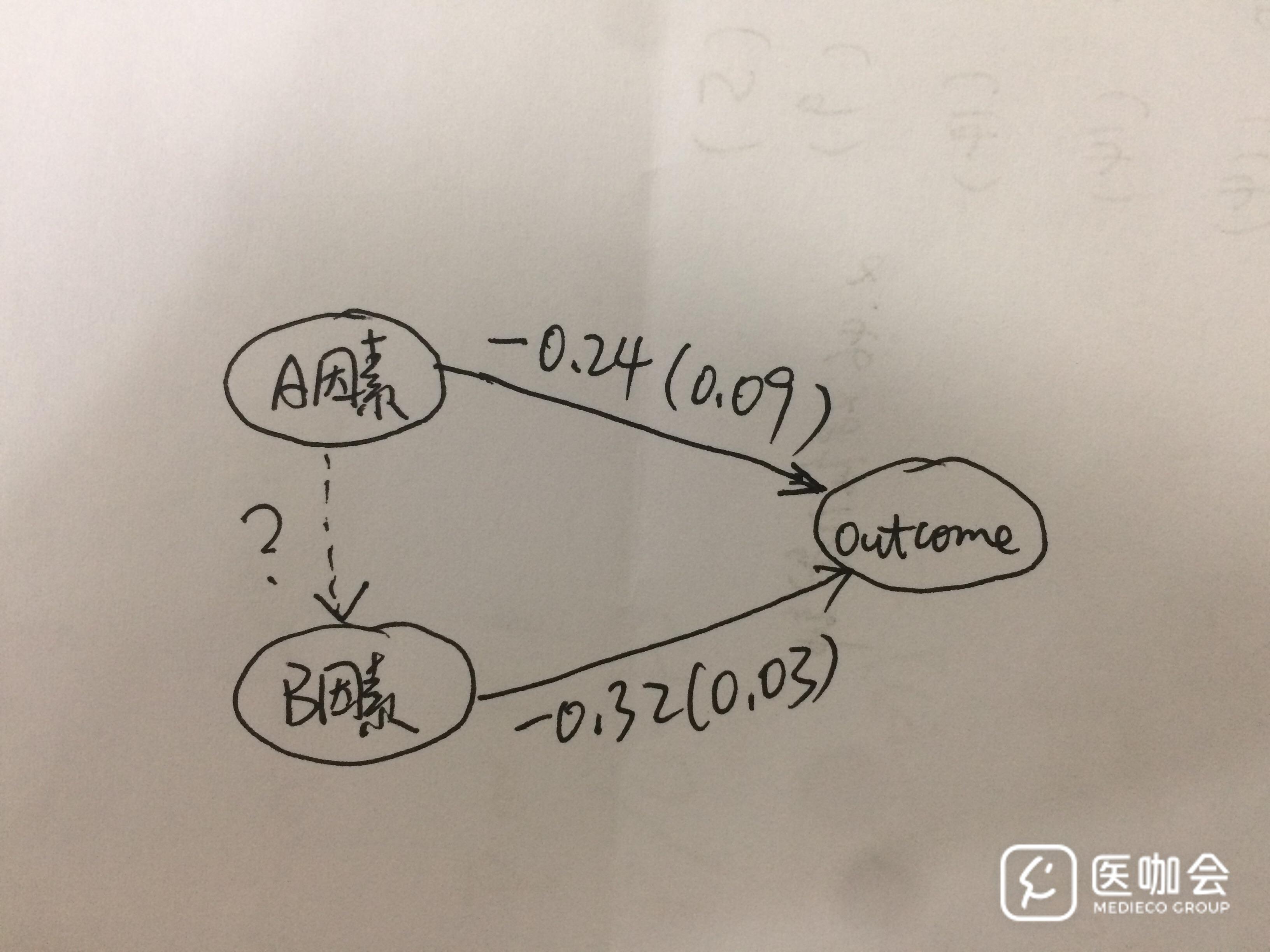 问题描述:已知A因素、B因素与结果Outcome的标准化回归系数和标准误,请问,如何求出A因素与B因素的关联(标准化回归系数和标准误)?或者路径系数?