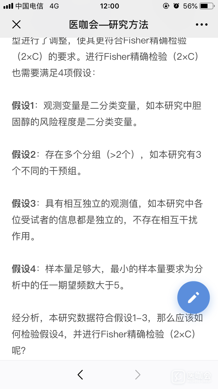 教程中Fisher检验假设4是否有误?应该是有1个期望频数小于5?