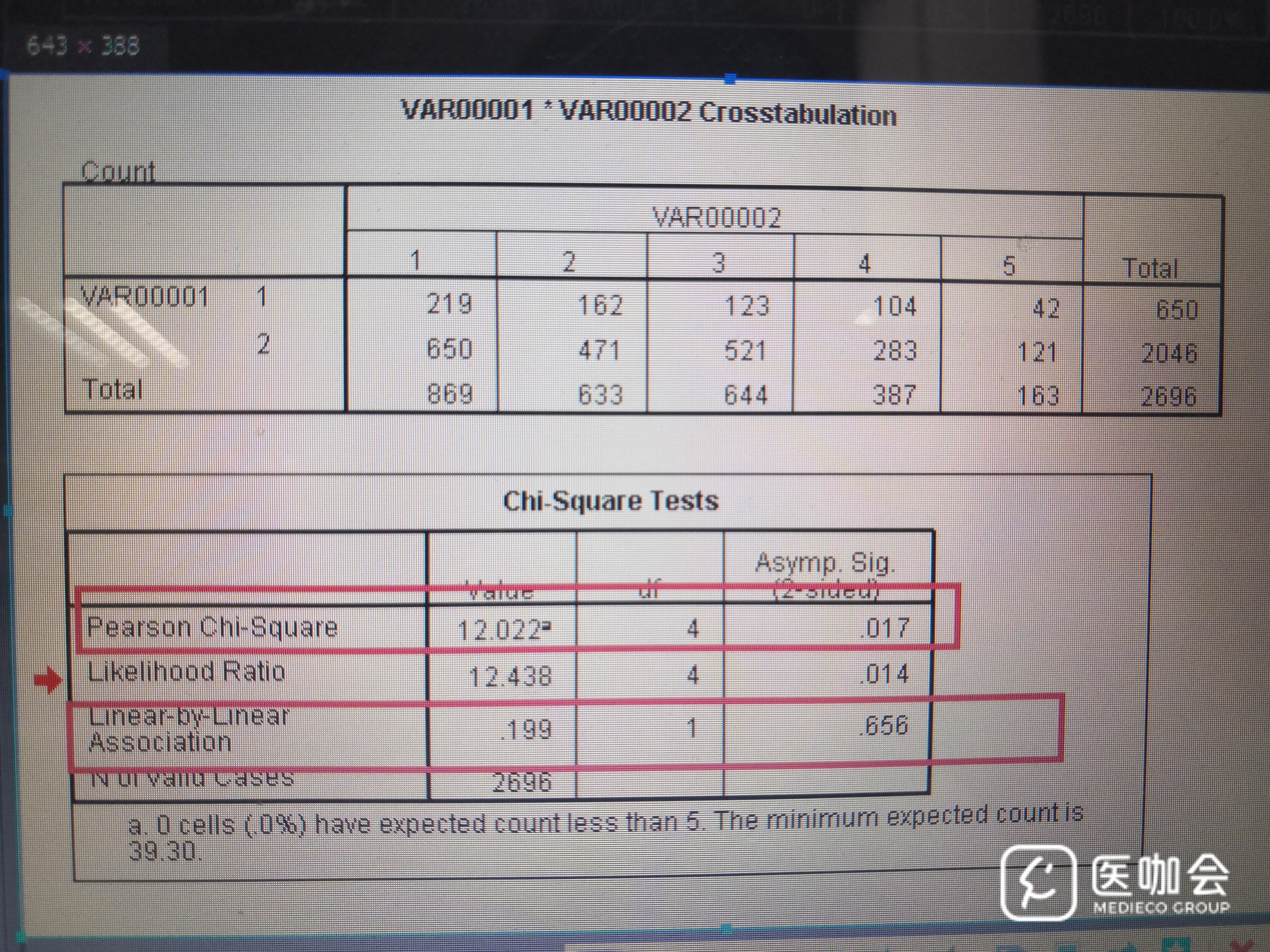 列联表卡方检验,row是性别,column是等级资料(满意度),结果是看pearon chi还是linear-by-linear association?两个结果差别挺大。如果row是无序多分类,要看什么值?