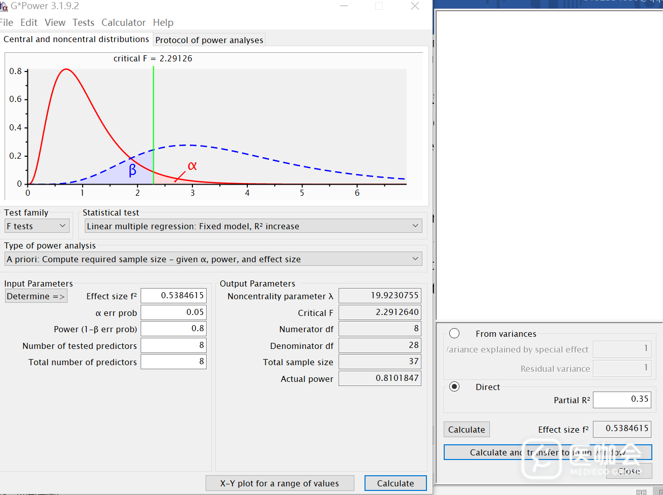 多元回归样本量计算,用Gpower 软件,r方是从文献中得来的。请问左下角的这个