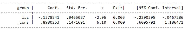 关于GEE结果的解释。 我有一个多时间点数据x,分组a,b两组,做出来的结果比如是下图: coef我该怎么解释?是b与a相比,x总体降低了13.79%(95%CI 4.67%~22.9%)吗?还是说某种趋势的变化? 谢谢~