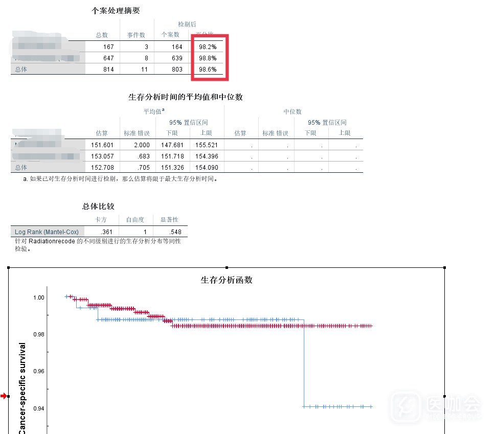 请问老师,红框里面的生存率为什么和下面曲线中的生存率差异很大?