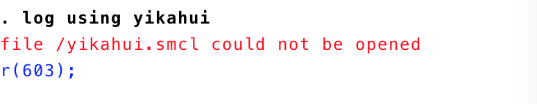 在stata 14中保存log file,在command window中输入log using yikahui 之后出现: file /yikahui.smcl could not be opened r(603);