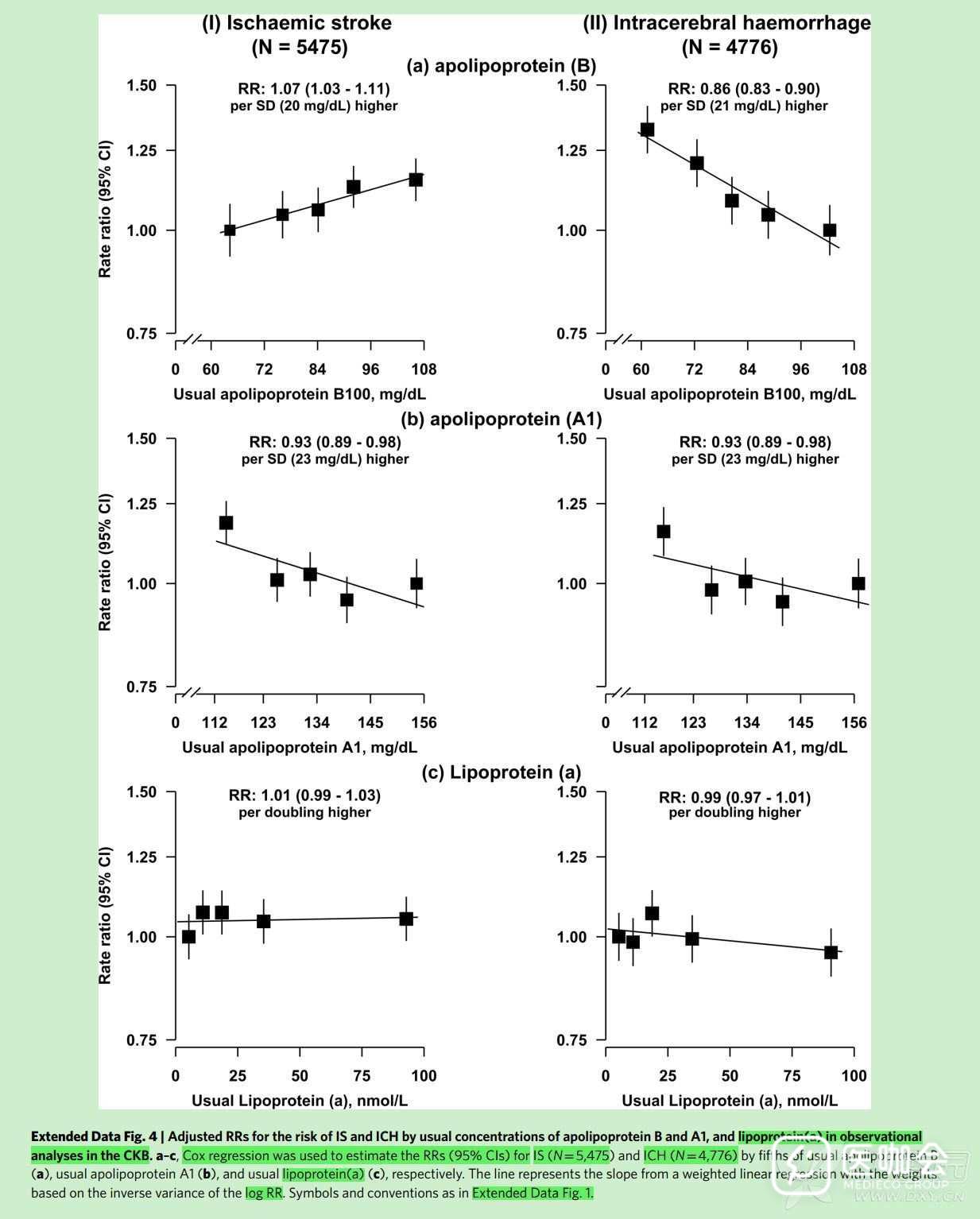 如何解读偏态分布因变量-lg转换后-的多元回归结果? 如题,一个case-control研究,所研究的血脂指标A(代指)是一个极偏态分布变量(mg/dl)。参考其他文献的方法,对变量进行lg转换,即B=log10(A)。将B纳入多元回归方程,得出系数β(即OR值)。 请问如何解读这个OR值,统计学上我知道OR值等于B(lgA)每增加1个单位,因变量发生风险Y增加至多少倍。但是在实际解读中的呢? 比如参考文献中是进行的自然对数转换,文献讨论里面解读是A每增加一个SD,Y增加多少倍。 那么我还看到这样一个文献:如截图 为什么同样进行这三个血脂指标的转换(LogRR),解读时候inverse variance of logRR,在ApoB、ApoA和Lp(a)三个指标中分别是per SD、perSD、per doubling higher呢? 求详细解答。