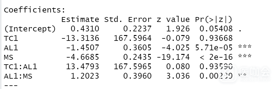 我用AIC做逐步选择,为啥不显著变量没有被剔除掉,如,TC和其交互项TC:AL