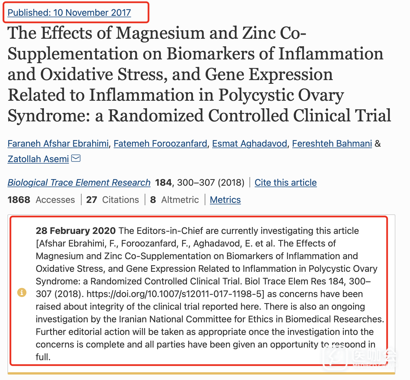 在给《Clinical Endocrinology and Metabolism》的一封信中,Gaby博士提醒期刊注意Asemi等在完成研究之前就提交的2篇论文。在回复信中,Asemi等人更改了这2篇论文的招募日期。