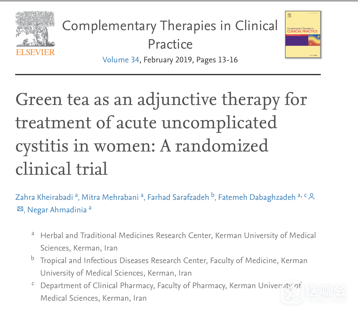 研究将70名首次出现急性无并发症膀胱炎的女性患者(由传染病专家根据病史、体格检查、临床表现和尿液分析诊断)随机分配,以双盲的方式接受2 g绿茶提取液或安慰剂治疗,每天一次,连续3天。所有患者均接受磺胺甲唑-甲氧苄啶治疗。3天后,安慰剂组有膀胱炎症状的女性比例为63%,绿茶组为2% (P=0.0001)。