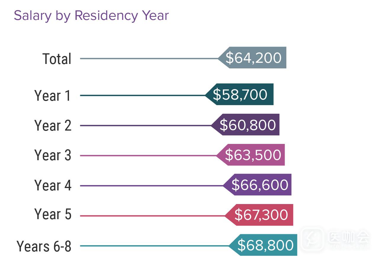 住院医的收入因工作年限而异,工作第6-8年的住院医,比工作第1年的住院医收入高17%。