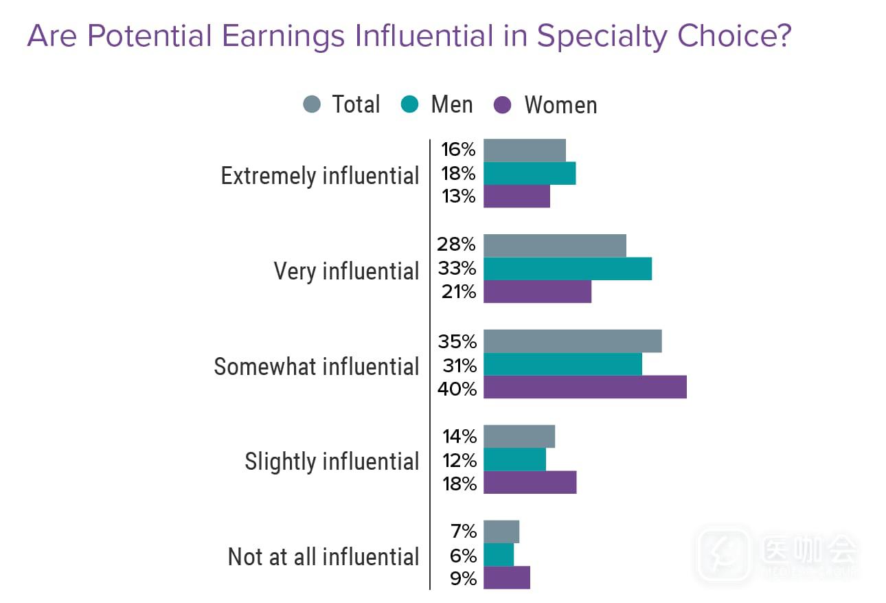与女性住院医相比,更多男性住院医认为未来的收入会对科室选择产生大的影响。