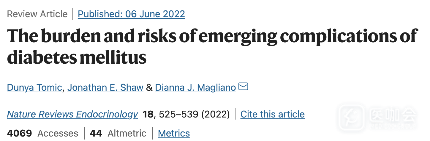 近日,《nature reviews endocrinology》(IF=47.564)发表了一篇综述,聚焦在糖尿病新兴并发症的风险和疾病负担,包括癌症、肝病、睡眠障碍和认知障碍等。