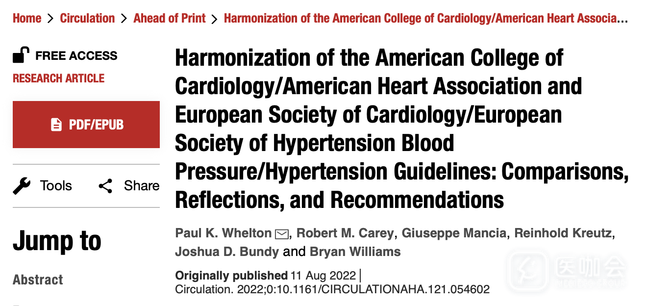 Circulation:从8个方面,对比欧美两大高血压指南的异同