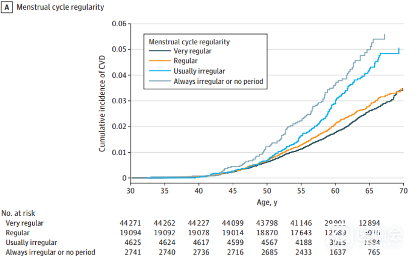 - 29-46岁女性护士的月经周期越不规律,CVD累积风险越高。