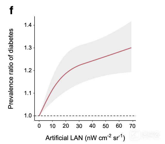 图. 室外人造光暴露与糖尿病患病率的相关性