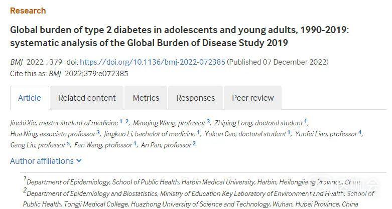 2022年12月7日,《BMJ》(IF=93.333)发表了一项来自中国研究者的研究成果。研究者利用全球疾病负担研究(GBD 2019)的数据,估计了1990-2019年15-39岁人群2型糖尿病的全球疾病负担。