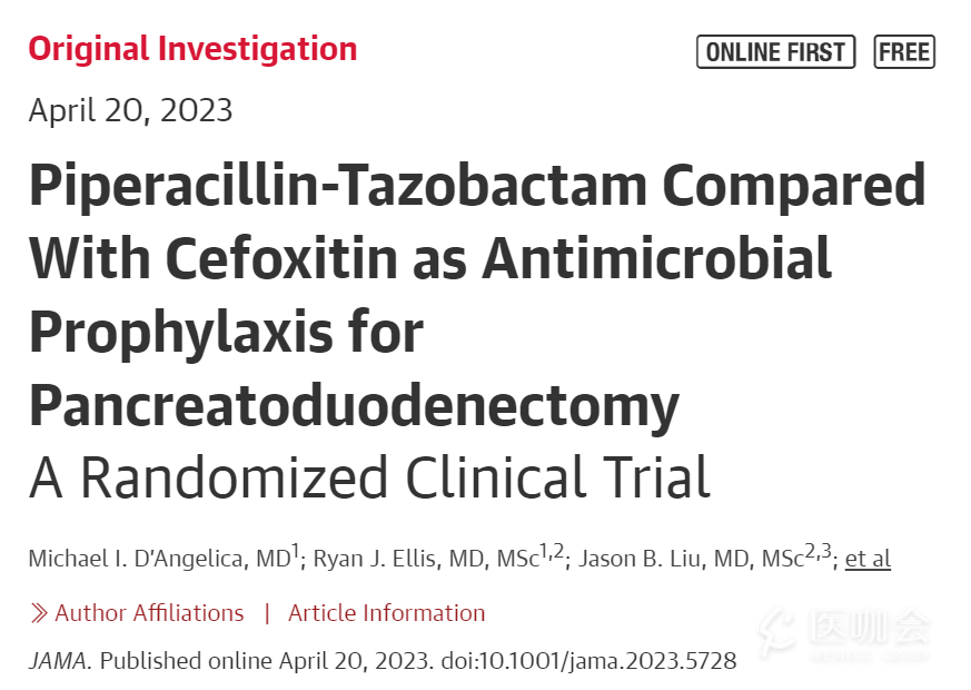 JAMA:哌拉西林-他唑巴坦与头孢西丁预防胰十二指肠切除术后感染的随机对照临床试验
