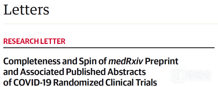 David Schriger等研究者在JAMA上发表了一篇Letter,纳入的COVID随机对照试验最开始传到了MedRxiv,之后又在同行评审的期刊上发表了终版。这项研究比较了最初版本与最终发表版本的“spin”情况。